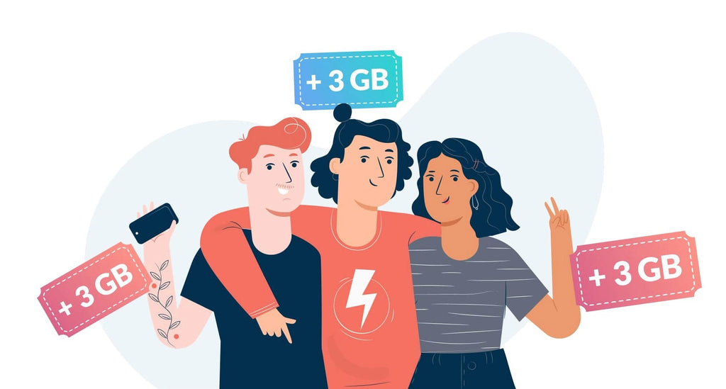 Your referred friend will get a data coupon (3 GB for a Lifetime line or eSIM).